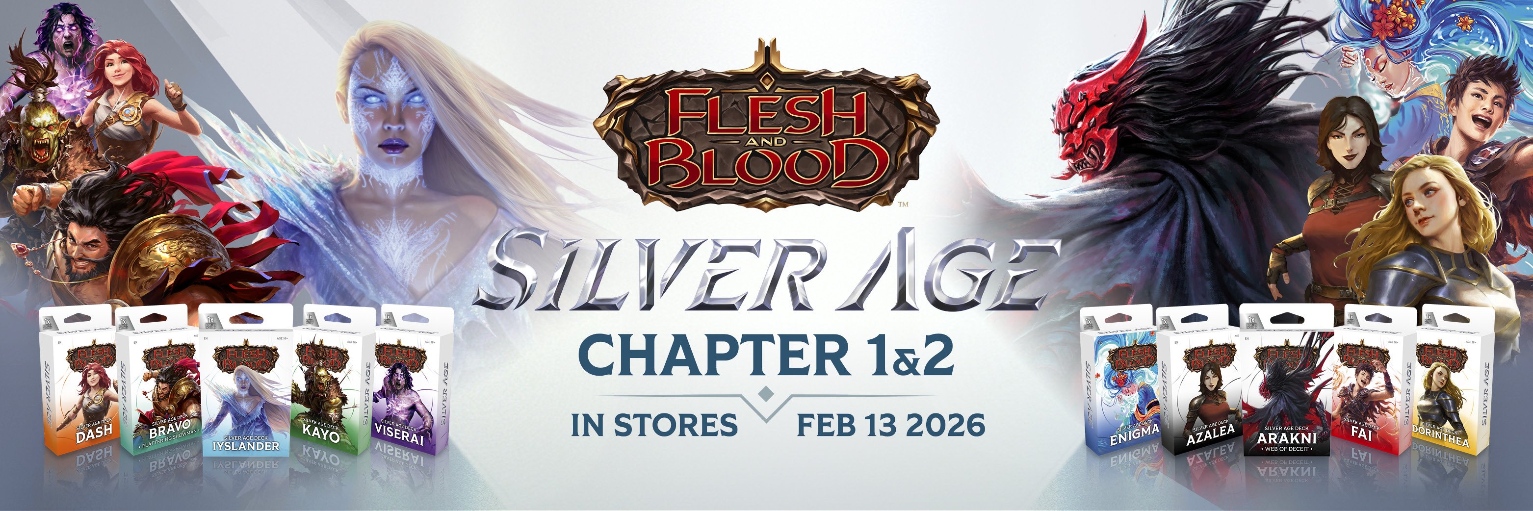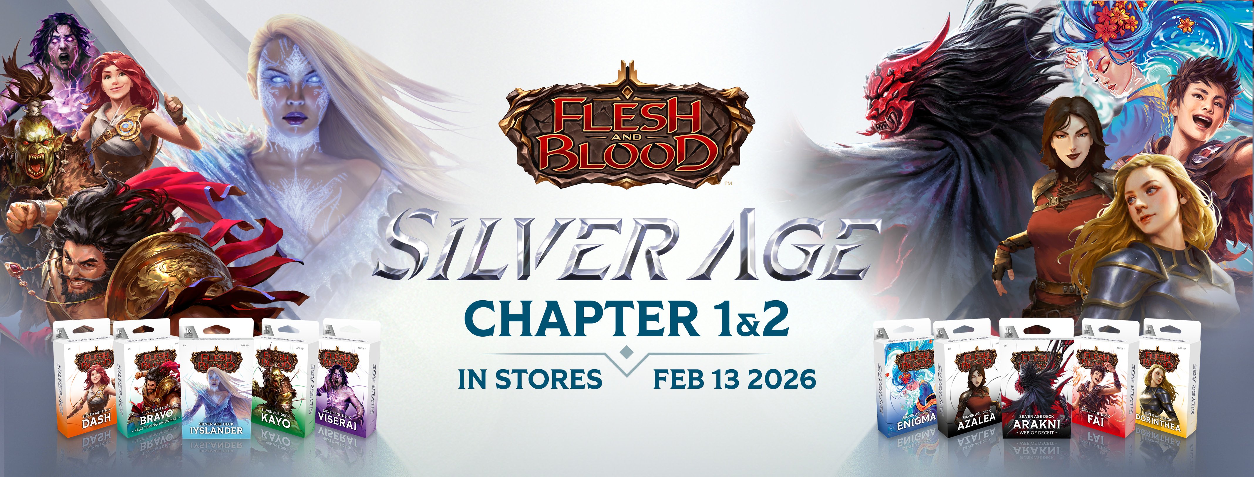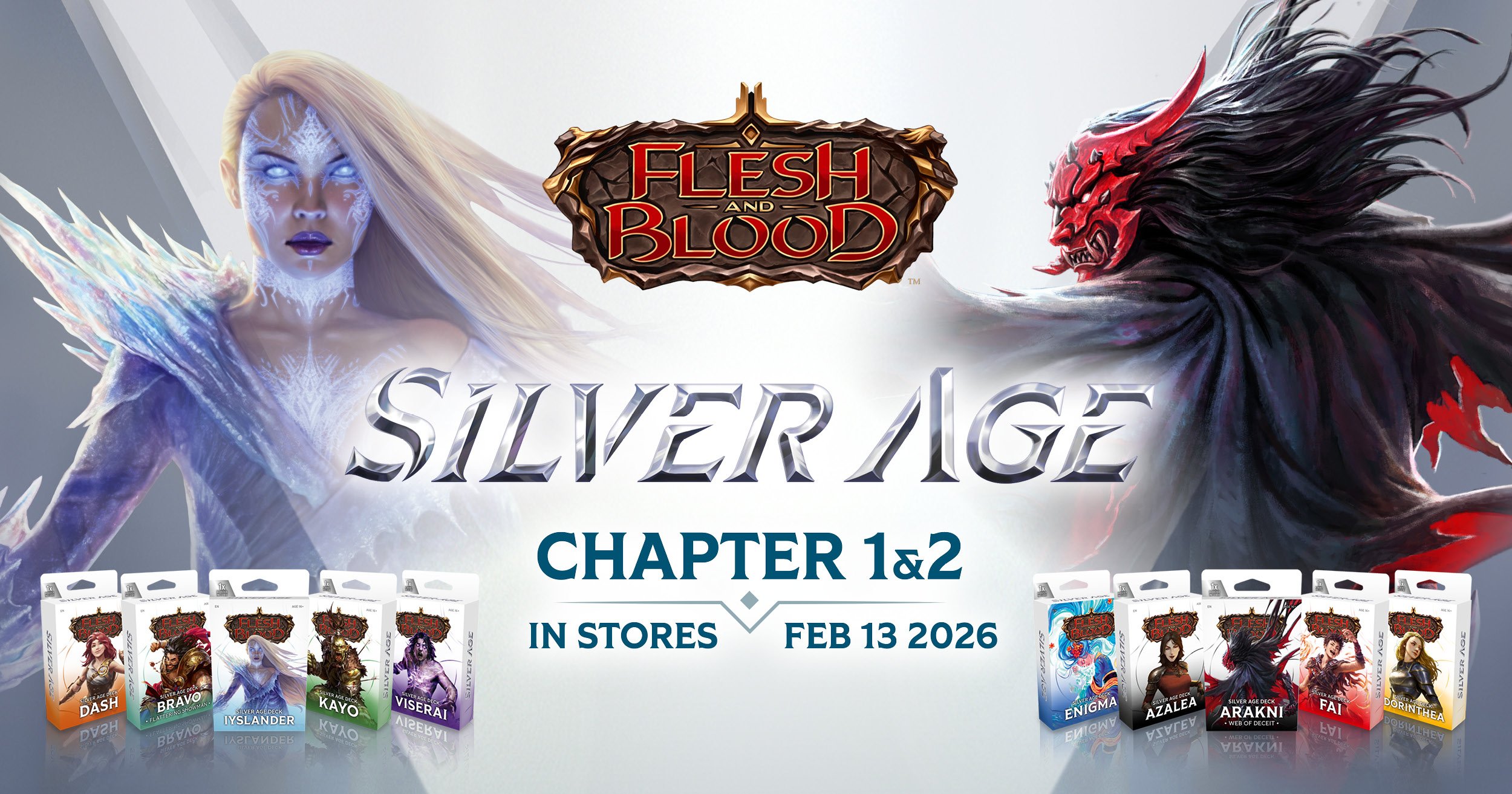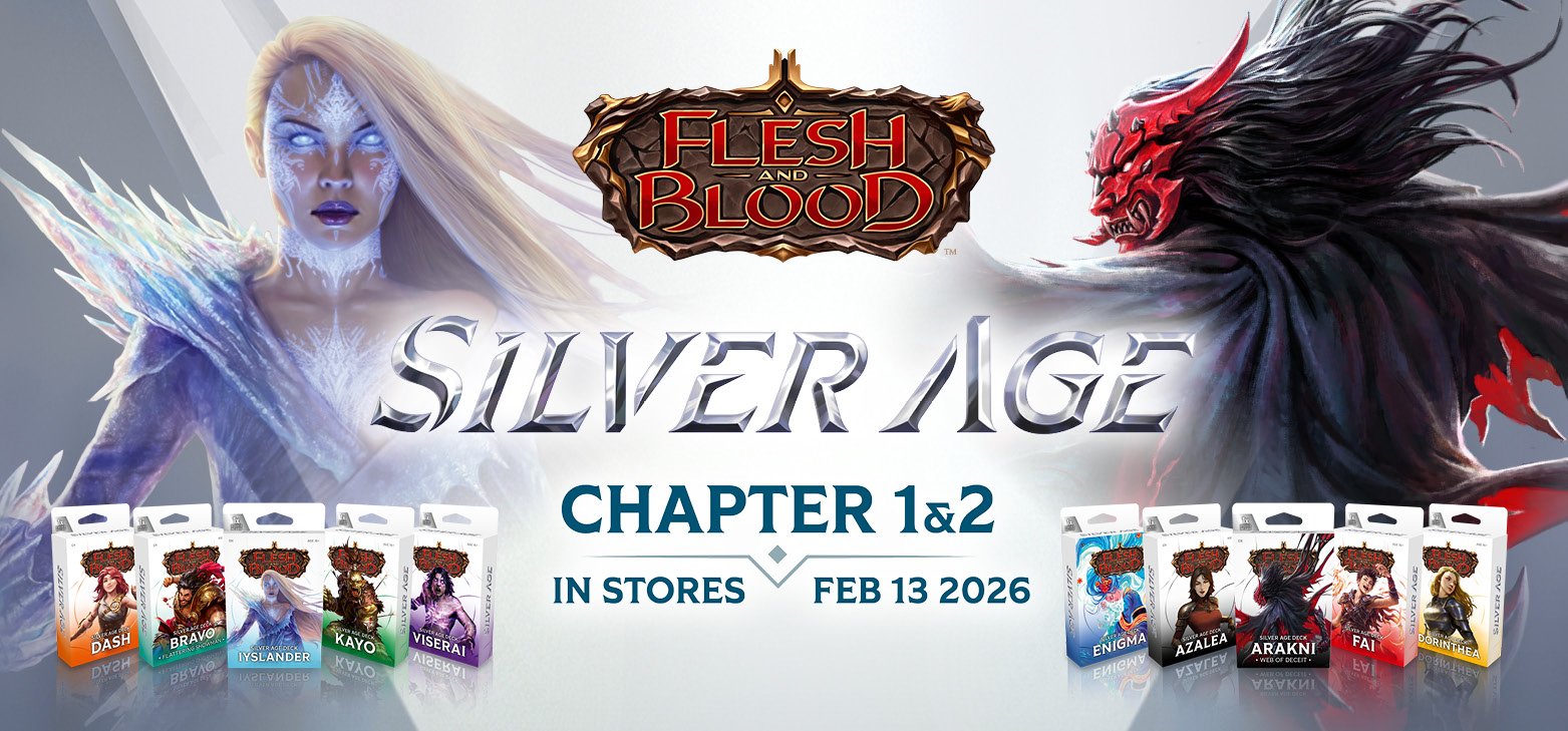 Home Marketing Assets Silver Age Silver Age Logo Silver Age Logo Silver Age Logo (JP) Product Sheet Silver Age Product Sheet English Silver Age Product Sheet French Silver Age Product Sheet Japanese Product: Silver Age Chapter 1 Silver Age Chapter 1 Display Silver Age Chapter 1 Showcase Silver Age Chapter 1 Lineup Silver Age Deck Bravo Silver Age Deck Dash Silver Age Deck Iyslander Silver Age Deck Kayo Silver Age Deck Viserai Product: Silver Age Chapter 2 Silver Age Chapter 2 Display Silver Age Chapter 2 Showcase Silver Age Chapter 2 Lineup Silver Age Deck Arakni Silver Age Deck Azalea Silver Age Deck Dorinthea Silver Age Deck Enigma Silver Age Deck Fai Product: Silver Age Chapter 1 (French and Japanese) Silver Age Chapter 1 Display (FR) Silver Age Chapter 1 Showcase (FR) Silver Age Deck Bravo (FR) Silver Age Deck Dash (FR) Silver Age Deck Iyslander (FR) Silver Age Deck Kayo (FR) Silver Age Deck Viserai (FR) Silver Age Chapter 1 Display (JP) Silver Age Chapter 1 Showcase (JP) Silver Age Deck Bravo (JP) Silver Age Deck Dash (JP) Silver Age Deck Iyslander (JP) Silver Age Deck Kayo (JP) Silver Age Deck Viserai (JP) Product: Silver Age Chapter 2 (French and Japanese) Silver Age Chapter 2 Display (FR) Silver Age Chapter 2 Showcase (FR) Silver Age Deck Arakni (FR) Silver Age Deck Azalea (FR) Silver Age Deck Dorinthea (FR) Silver Age Deck Enigma (FR) Silver Age Deck Fai (FR) Silver Age Chapter 2 Display (JP) Silver Age Chapter 2 Showcase (JP) Silver Age Deck Arakni (JP) Silver Age Deck Azalea (JP) Silver Age Deck Dorinthea (JP) Silver Age Deck Enigma (JP) Silver Age Deck Fai (JP) Marketing Silver Age Chapter 1 Email Silver Age Chapter 1 FB Banner Silver Age Chapter 1 FB Post Silver Age Chapter 1 Social Silver Age Chapter 1 Story Silver Age Chapter 1 Stream Silver Age Chapter 1 X Banner Silver Age Chapter 2 Email Silver Age Chapter 2 FB Banner Silver Age Chapter 2 FB Post Silver Age Chapter 2 Social Silver Age Chapter 2 Story Silver Age Chapter 2 Stream Silver Age Chapter 2 X Banner Silver Age Chapter 1+2 Email Silver Age Chapter 1+2 FB Banner Silver Age Chapter 1+2 FB Post Silver Age Chapter 1+2 Social Silver Age Chapter 1+2 Story Silver Age Chapter 1+2 Stream Silver Age Chapter 1+2 X Banner