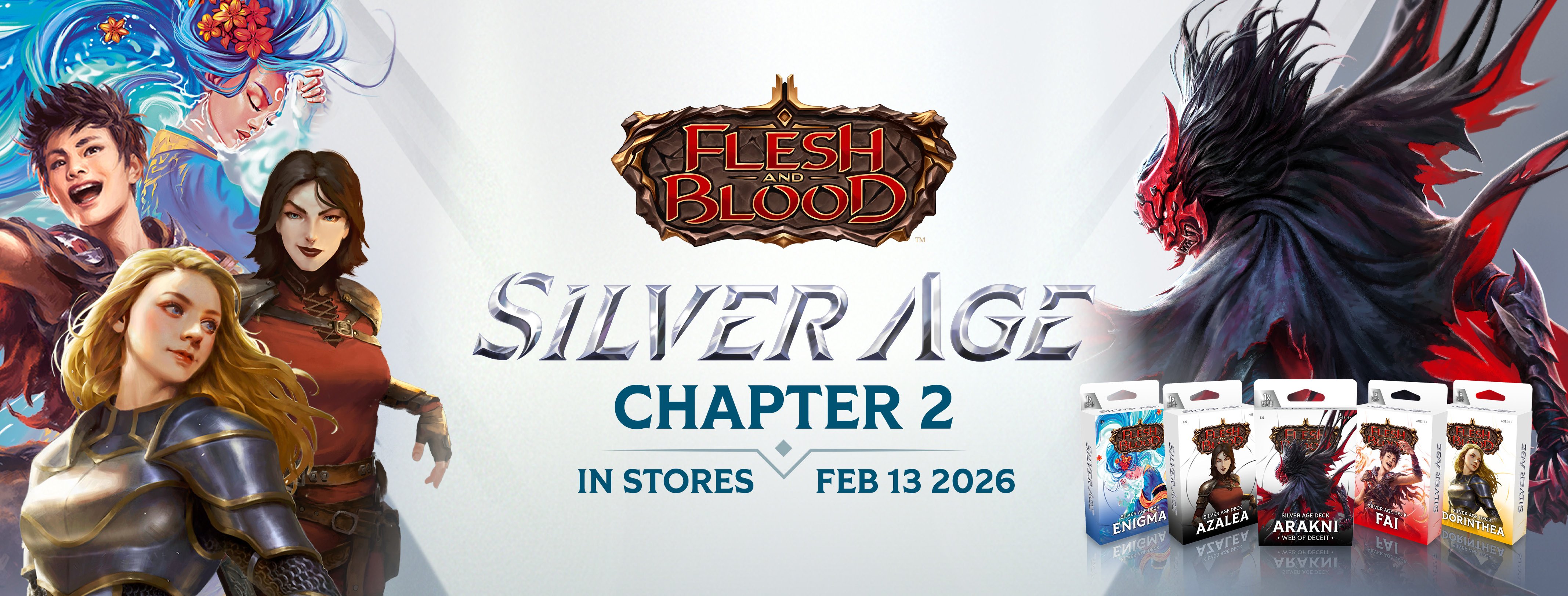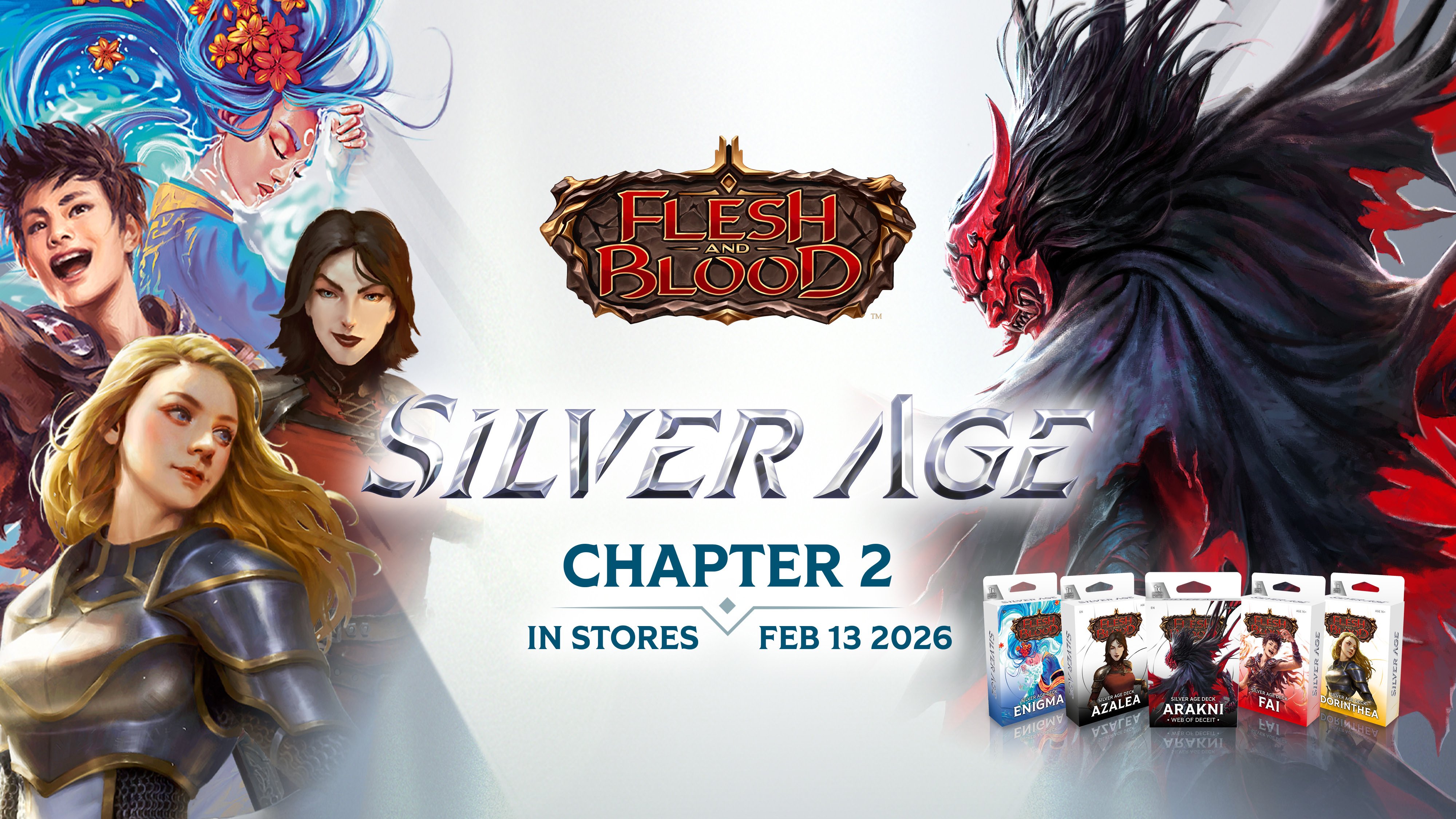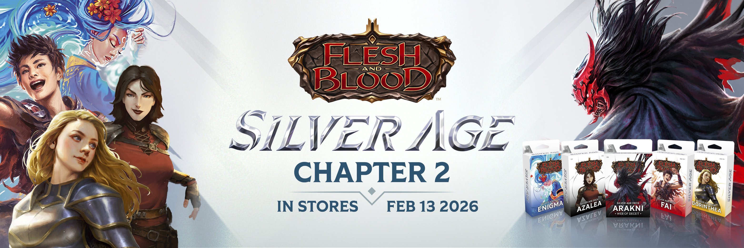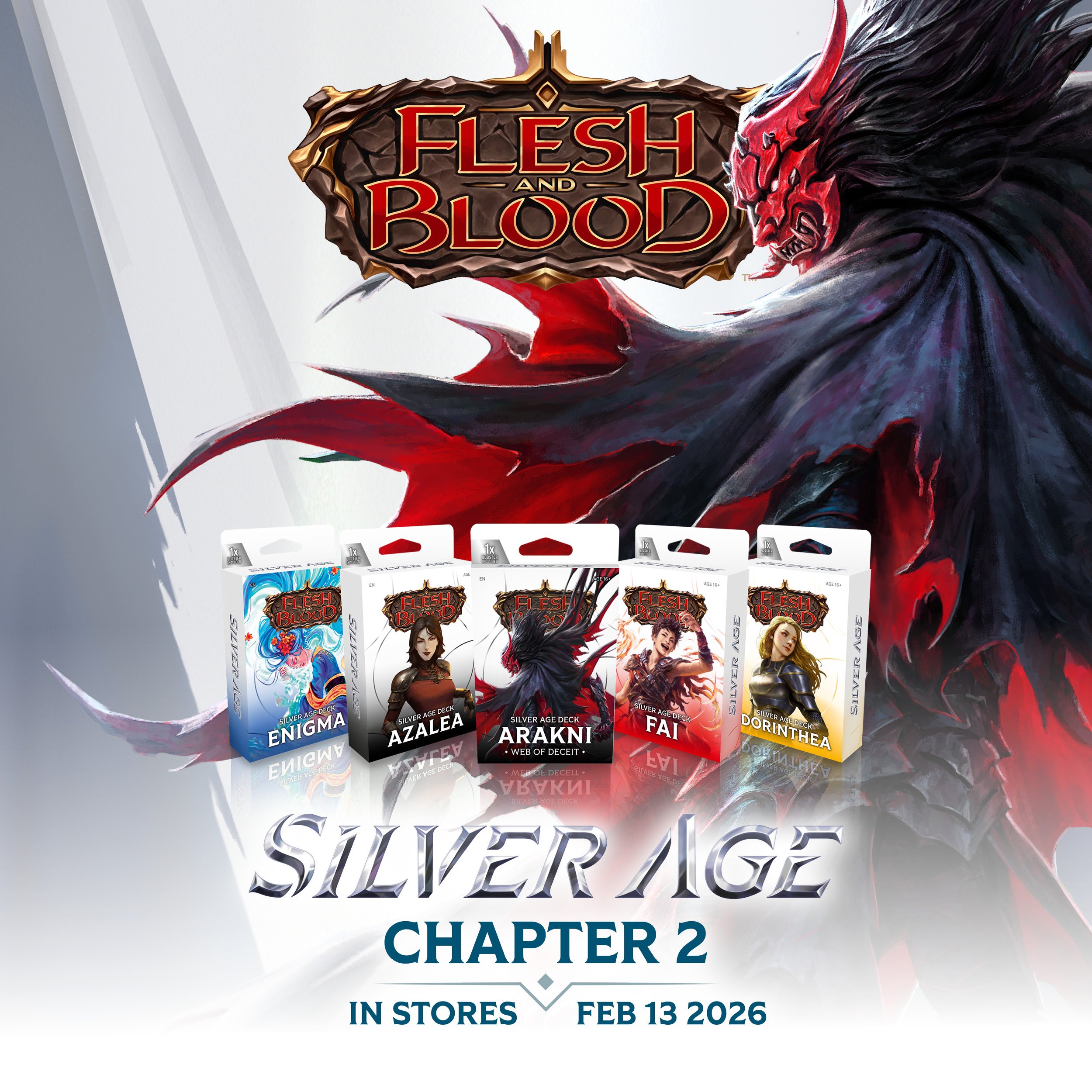 Home Marketing Assets Silver Age Silver Age Logo Silver Age Logo Silver Age Logo (JP) Product Sheet Silver Age Product Sheet English Silver Age Product Sheet French Silver Age Product Sheet Japanese Product: Silver Age Chapter 1 Silver Age Chapter 1 Display Silver Age Chapter 1 Showcase Silver Age Chapter 1 Lineup Silver Age Deck Bravo Silver Age Deck Dash Silver Age Deck Iyslander Silver Age Deck Kayo Silver Age Deck Viserai Product: Silver Age Chapter 2 Silver Age Chapter 2 Display Silver Age Chapter 2 Showcase Silver Age Chapter 2 Lineup Silver Age Deck Arakni Silver Age Deck Azalea Silver Age Deck Dorinthea Silver Age Deck Enigma Silver Age Deck Fai Product: Silver Age Chapter 1 (French and Japanese) Silver Age Chapter 1 Display (FR) Silver Age Chapter 1 Showcase (FR) Silver Age Deck Bravo (FR) Silver Age Deck Dash (FR) Silver Age Deck Iyslander (FR) Silver Age Deck Kayo (FR) Silver Age Deck Viserai (FR) Silver Age Chapter 1 Display (JP) Silver Age Chapter 1 Showcase (JP) Silver Age Deck Bravo (JP) Silver Age Deck Dash (JP) Silver Age Deck Iyslander (JP) Silver Age Deck Kayo (JP) Silver Age Deck Viserai (JP) Product: Silver Age Chapter 2 (French and Japanese) Silver Age Chapter 2 Display (FR) Silver Age Chapter 2 Showcase (FR) Silver Age Deck Arakni (FR) Silver Age Deck Azalea (FR) Silver Age Deck Dorinthea (FR) Silver Age Deck Enigma (FR) Silver Age Deck Fai (FR) Silver Age Chapter 2 Display (JP) Silver Age Chapter 2 Showcase (JP) Silver Age Deck Arakni (JP) Silver Age Deck Azalea (JP) Silver Age Deck Dorinthea (JP) Silver Age Deck Enigma (JP) Silver Age Deck Fai (JP) Marketing Silver Age Chapter 1 Email Silver Age Chapter 1 FB Banner Silver Age Chapter 1 FB Post Silver Age Chapter 1 Social Silver Age Chapter 1 Story Silver Age Chapter 1 Stream Silver Age Chapter 1 X Banner Silver Age Chapter 2 Email Silver Age Chapter 2 FB Banner Silver Age Chapter 2 FB Post Silver Age Chapter 2 Social Silver Age Chapter 2 Story Silver Age Chapter 2 Stream Silver Age Chapter 2 X Banner Silver Age Chapter 1+2 Email Silver Age Chapter 1+2 FB Banner Silver Age Chapter 1+2 FB Post Silver Age Chapter 1+2 Social Silver Age Chapter 1+2 Story Silver Age Chapter 1+2 Stream Silver Age Chapter 1+2 X Banner